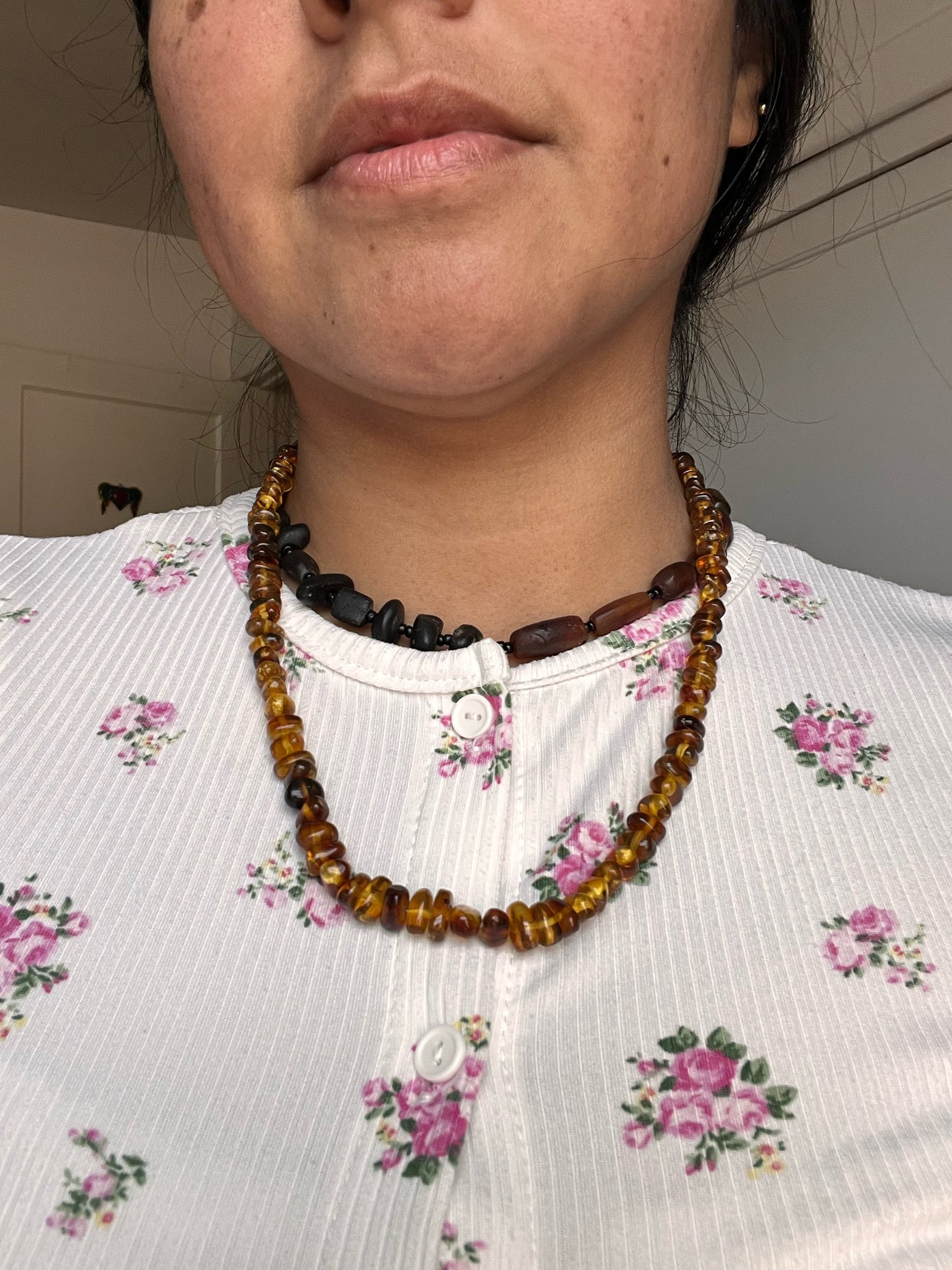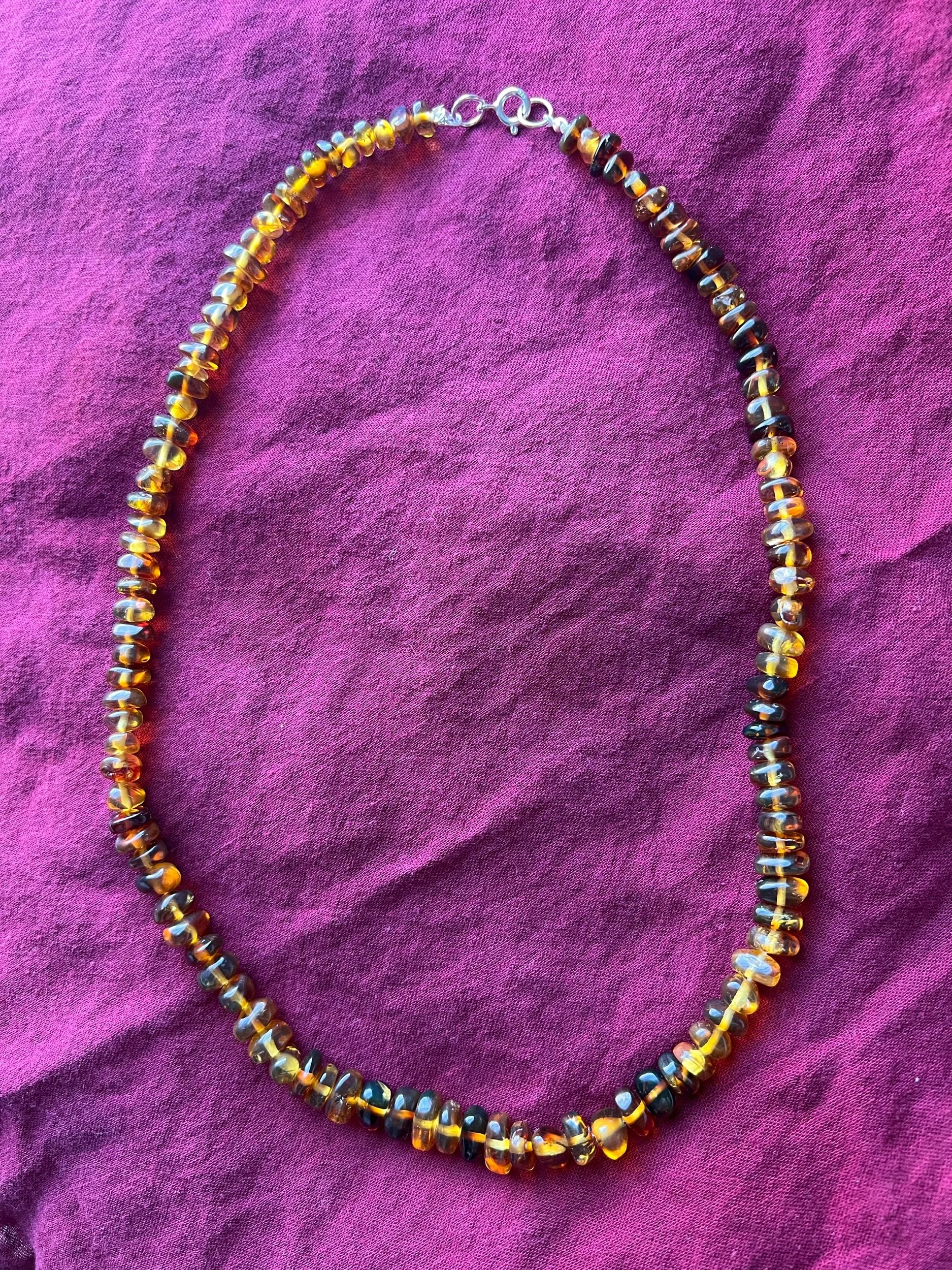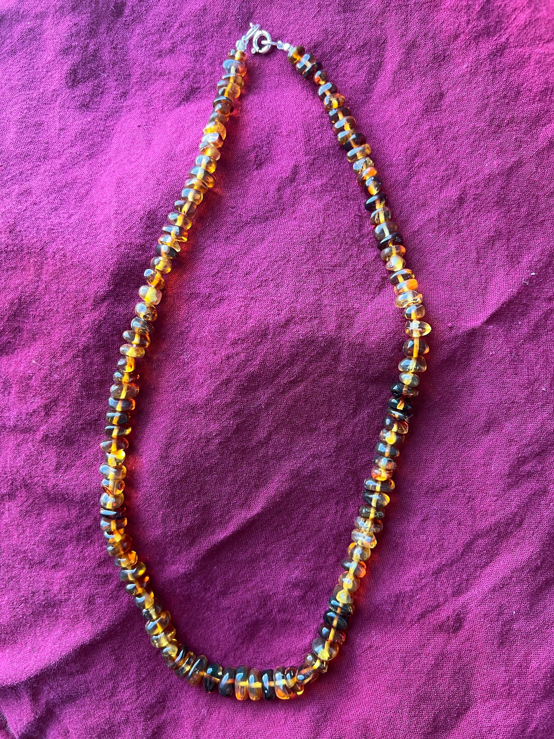 It is made with amber from Chiapas, Mx. And the clasp is made of silver.